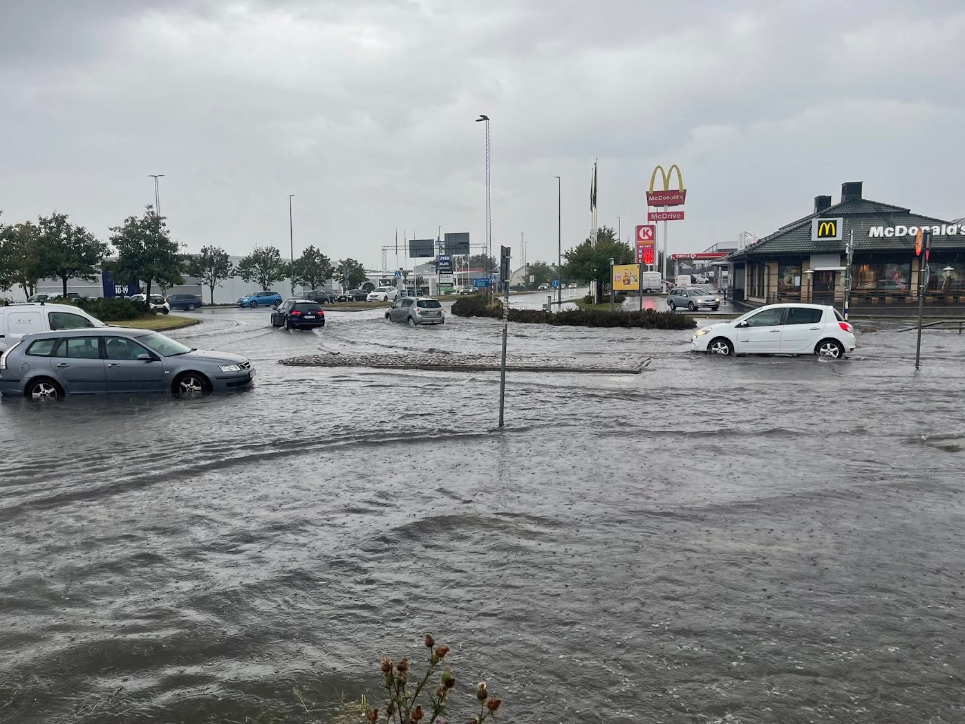 Dock var det en dag med skyfall nu. Jag kom körandes genom en rondell där det nu var en sjö, Vattnet formligen sprutade upp ur brunnarna. Nästan lite obehagligt köra där.