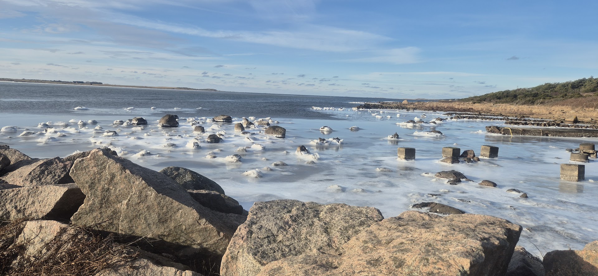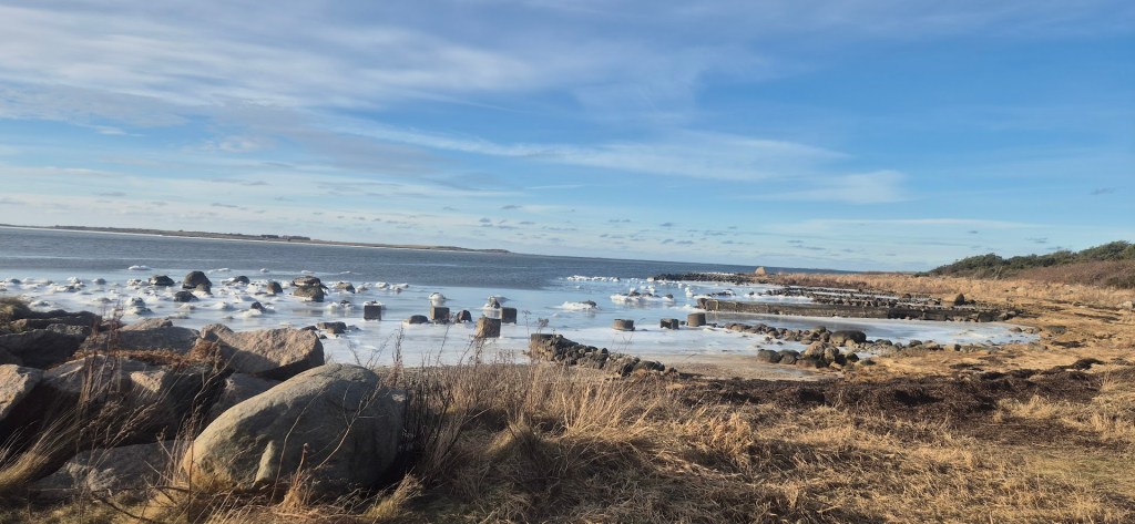 Tog ingen hundpromenad idag, frös väldigt mycket när jag körde ner till bryggan, gick ut på den och fotade havet som börjat frysa lite nu. Tror väl inte det kommer att frysa som det gjorde 2021 då kunde man gå ut till Balgö. Vi vinterbadade på den tiden varje dag och man fick ta upp ett hål i isen vid trappan så vi kunde bada. Häftigt bada och sen stå på bryggan i baddräkt när alla andra som grillade, åkte skridskor, vandrade på isen till Balgö kom iklädda tjocka jackor, mössor. vantar och kängor. Det var många som undrade om vi inte frös, men det gjorde vi inte