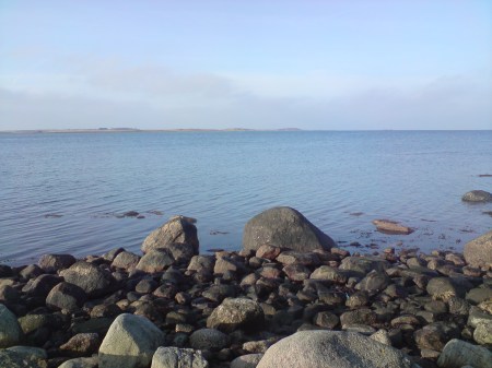 Vi går ner mot havet, Balgö brygga. Det är helt underbart ute, många minusgrader, men sådan där underbar kyla, friskt och skönt. Solen värmer, ingen vind. Uppe på kullen ser jag ut över havet, som ligger nästan helt still, endast några enstaka krusningar. En ensam lastbåt i horisonten. Öar som ser ut att sväva i luften, med havet under sig. Gnistrande strandkant och runt stenbryggorna ligger det tunn is. I viken mot Tången sticker stenarna upp ur den nyfrusna isen. Inte ett ljud hörs. Inte ens en fågel hörs. Det är bara helt stilla. Lite ljud ibland från fd E6, Västkustvägen hörs. Jag försöker memorera bilden, det är så vacker nere vid havet. Jag har glömt både kamera och telefon hemma.