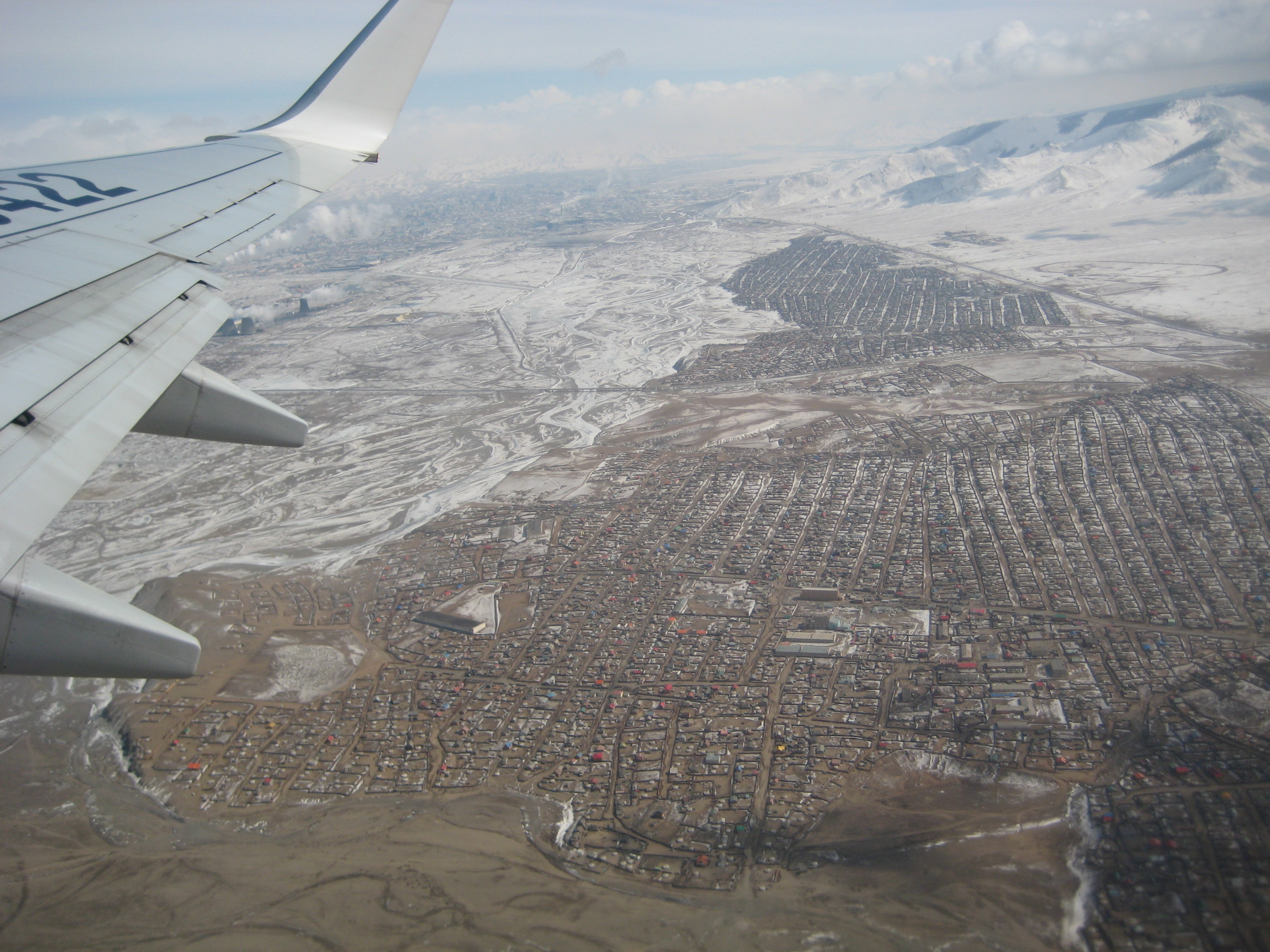 Ulaan Baatar från ovanUnder oss ringlar sig spåren för Transsibiriska järnvägen