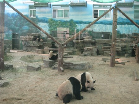 En dag tog vi oss fram till Beijing Zoo. Jag ville se pandorna. Det var väldigt roligt och jag är glad vi åkte dit. Men många andra djur, typ panter, jaguar, vargar mfl hade det inte så roligt. Instängda i små burar och tusentals människor som försöker uppkalla deras intresse genom rop och bankningar på glaset framför buren.