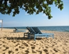 Stranden här hade blivit lite förstörd, utspolad under vintern. Men fortfarande fanns en liten strandremsa kvar. Men bara 15 meter åt båda hållen fanns den härligt breda stränder. Överallt solstolar man kunde låna eller som ingick i hotellet service. Givetvis fanns det pool nästan överallt.