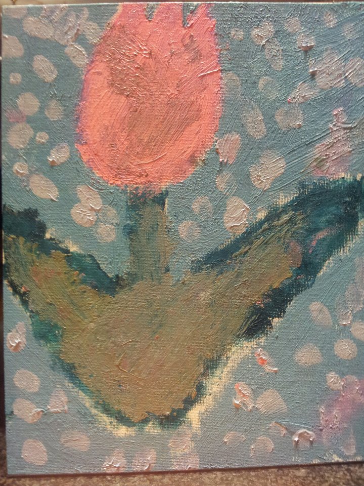 Om jag ser trött ut, är det inget mot hur jag känner mig. Men barnbarnen piggar upp och lilla Nellan har målat en tavla i olja med en rosa vacker tulpan (jag älskar tulpaner). Skrivit ett kort med 1000 kramar och hjärtan samt ”Vi är alltid med dig Farmor”. Då försvinner all trötthet. Älskade barnbarn! Duschar och kopplar av resten av kvällen.