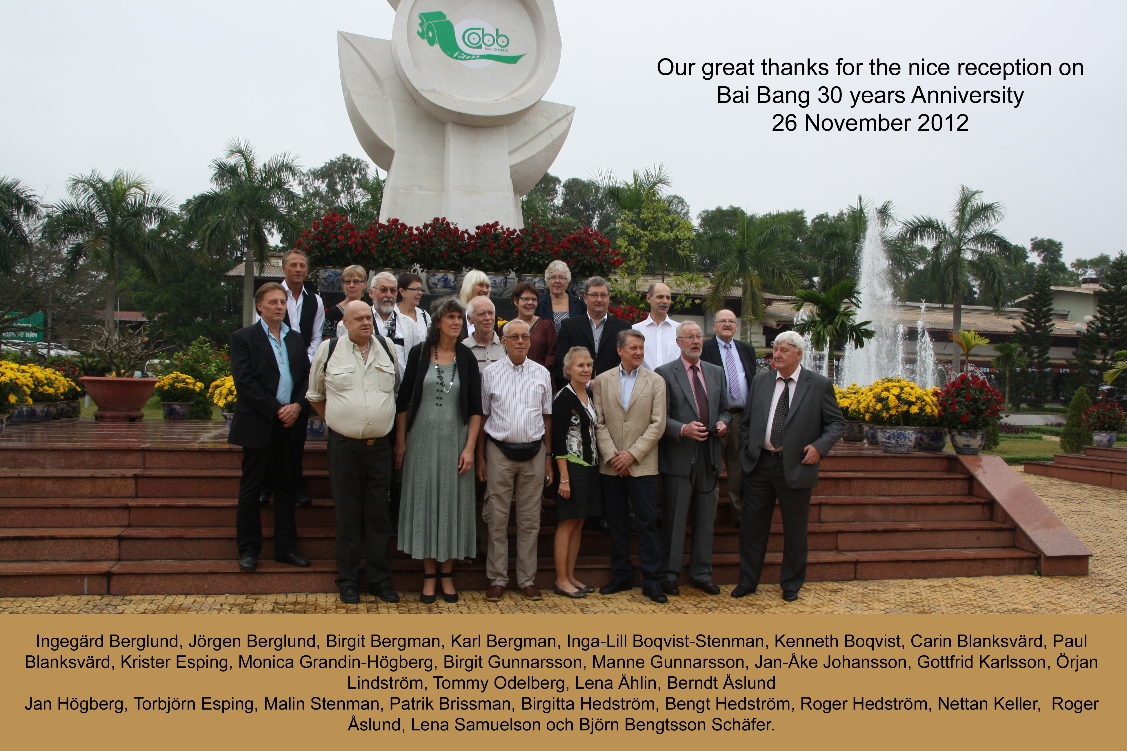 10 januari 2013Jag driver en liten resebyrå med resor i Vietnam. I november/december var vi med en grupp till Bai Bang och firade 30-års jubileum sedan Sverige överlämnade Bai Bang Paper Mill till Vietnam. Idag ingår det i Vinapaco,. Resan blev väldigt omtyckt och många har frågat om vi gör en likadan resa igen. Och det har vi beslutat att göra.