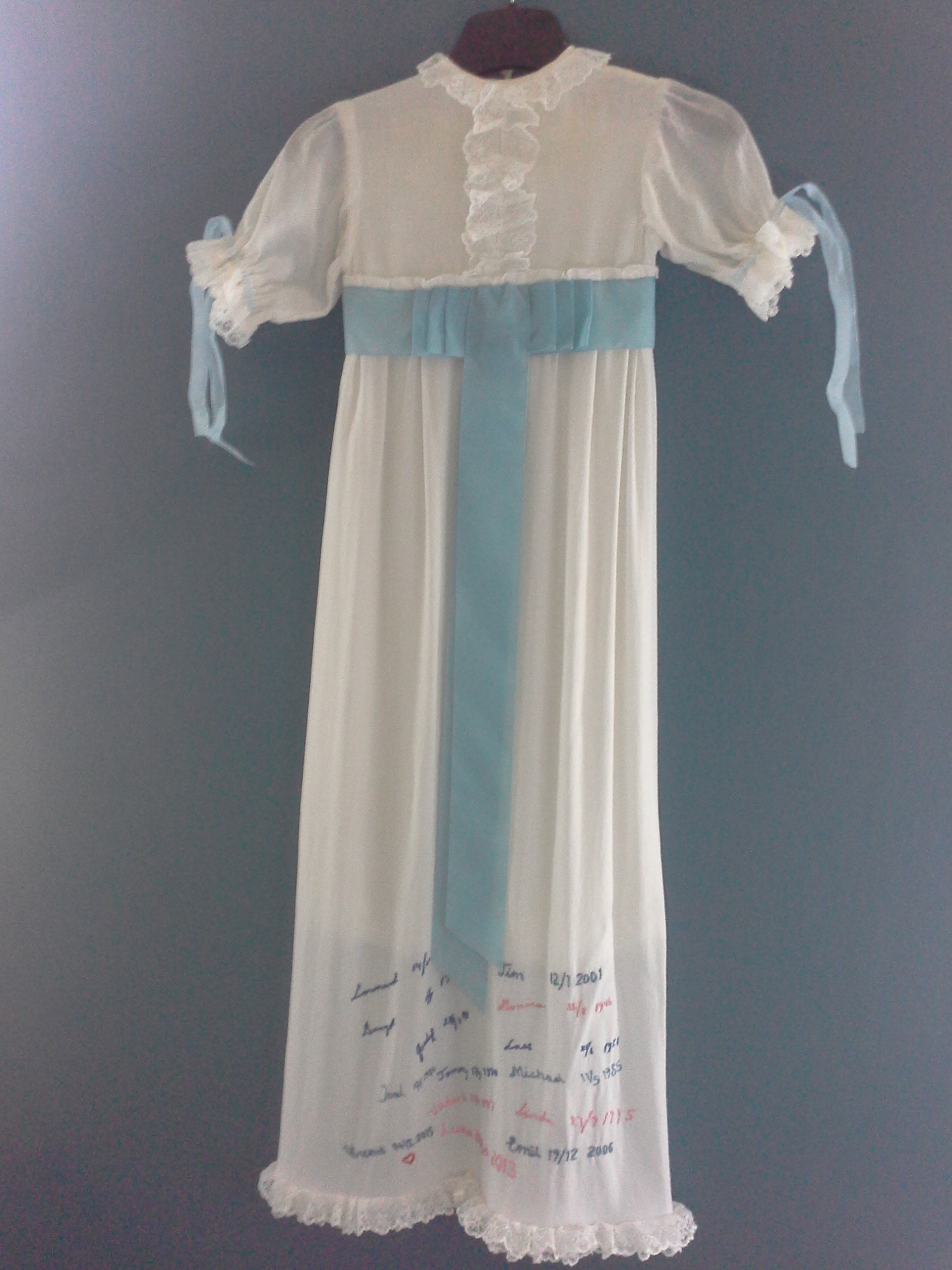 Nu stundar det till dop. Lilla barnbarnet Vincent skall döpas. Vi har en gammal dopklänning som gått i arv. Min pappa var den första som döptes i klänningen. Efterr dopet den 14 maj 2015 har 14 små babys döpts i klänningen,Det är 4 flickor och 10 pojkar.