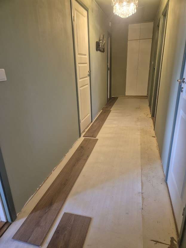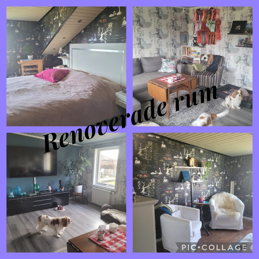 Jag har renoverat, dvs målat och tapetserat TV rum, sovrum och en lång hall. Inspirerad av ”Vem bor här” TV1. Det innebar att även taken fick färg o inte längre är vita. Därutöver har jag bottenmålat vår båt vi köpte, lite större än en eka och vi kan sova över i den. Sedan har jag målat alla staket runt altan mm vita. Ser så fräsch ut. Mina vackra klängrosor tog stryk förra året så jag har fått klippa bort mycket visset, döda grenar. Men kan dock se att det kommer många nya skott, så nästa sommar kanske i har vackra rosor igen.
