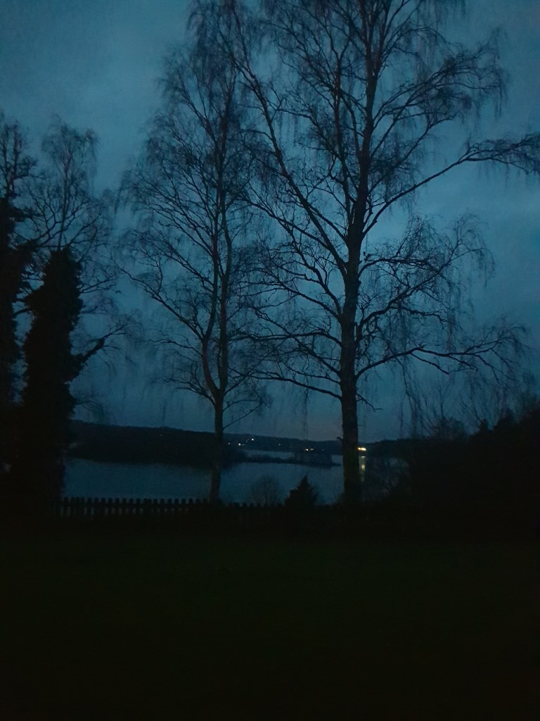 Vi gillade Julkalendern Mirakel i år. Varje morgon tog vi vår frukost vid TV, kunde inte missa den. Vädret började bli slaskigt o grått. Hundarna fick ta en dusch var gång de varit på promenad, de var lindrigt sagt grusiga små troll. Speciellt den dagen vi gick över strandängarna, vill till att ha bra skor på sig. Tre svanar simmade längst in i viken. På den lilla halvön som sticker ut stod många vita fåglar. Svanar… nej de brukar inte stå så. Tog en bild och zoomade upp, det var hägrar, säkert över 20 stycken stod som på parad.