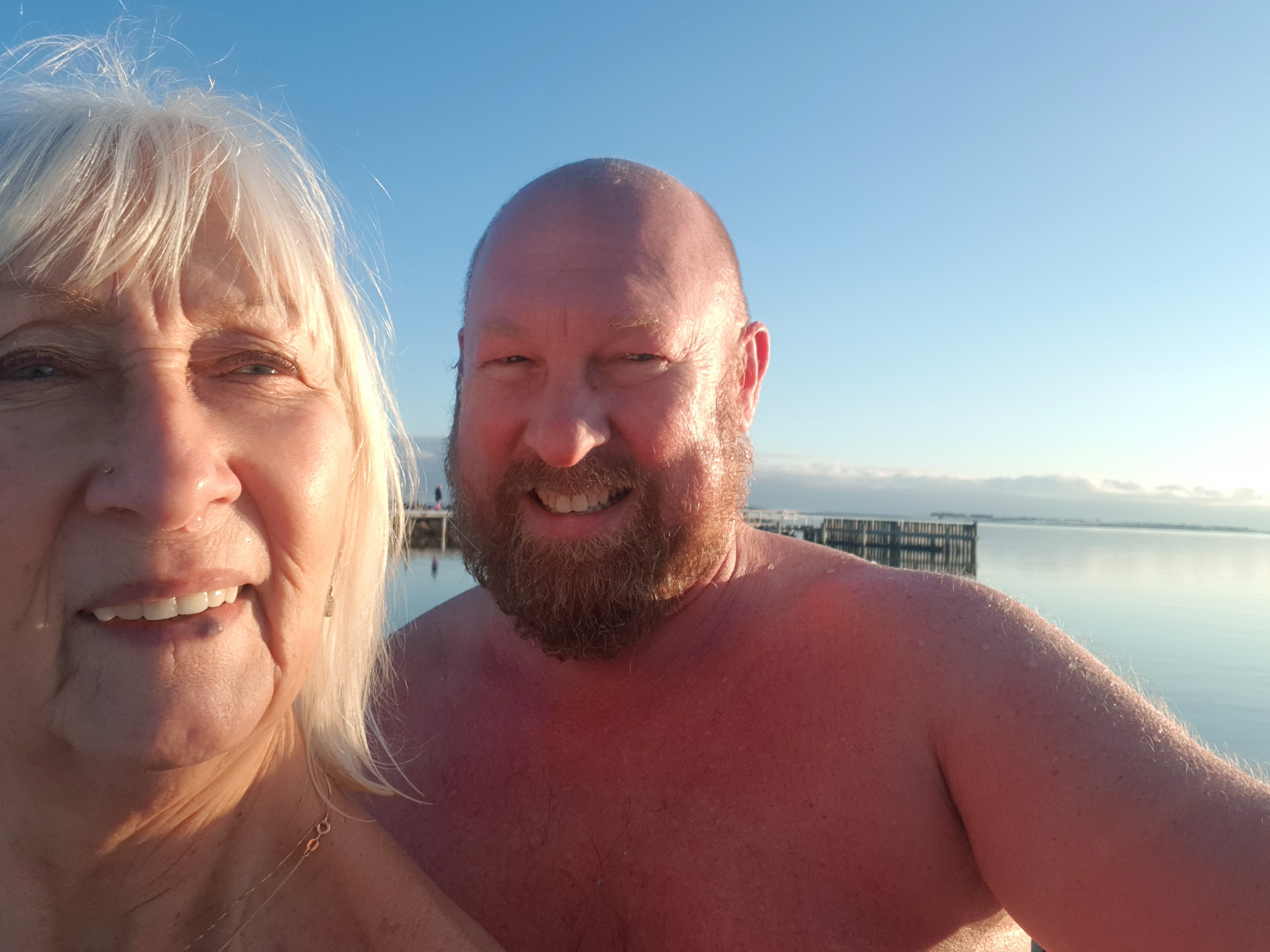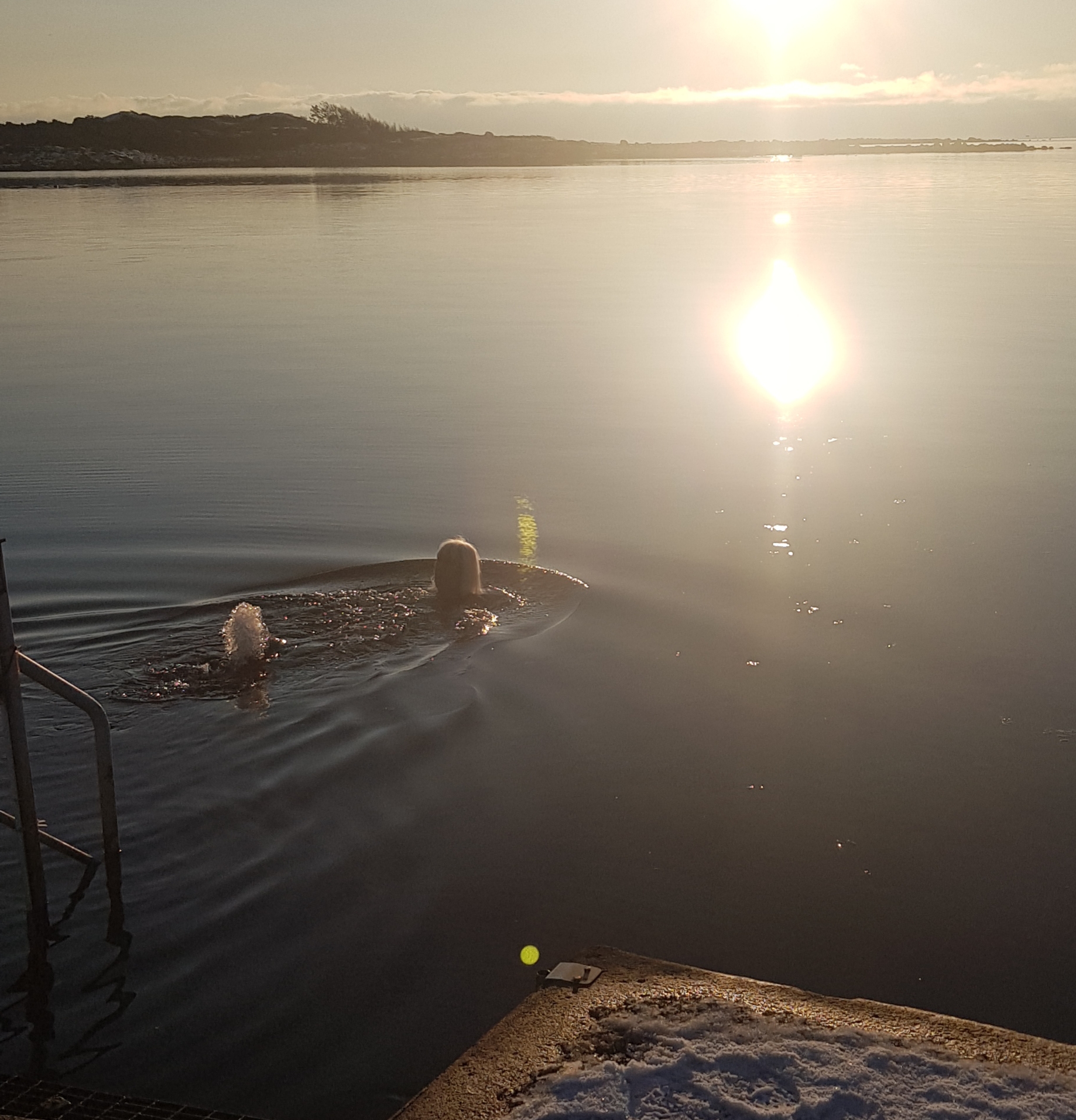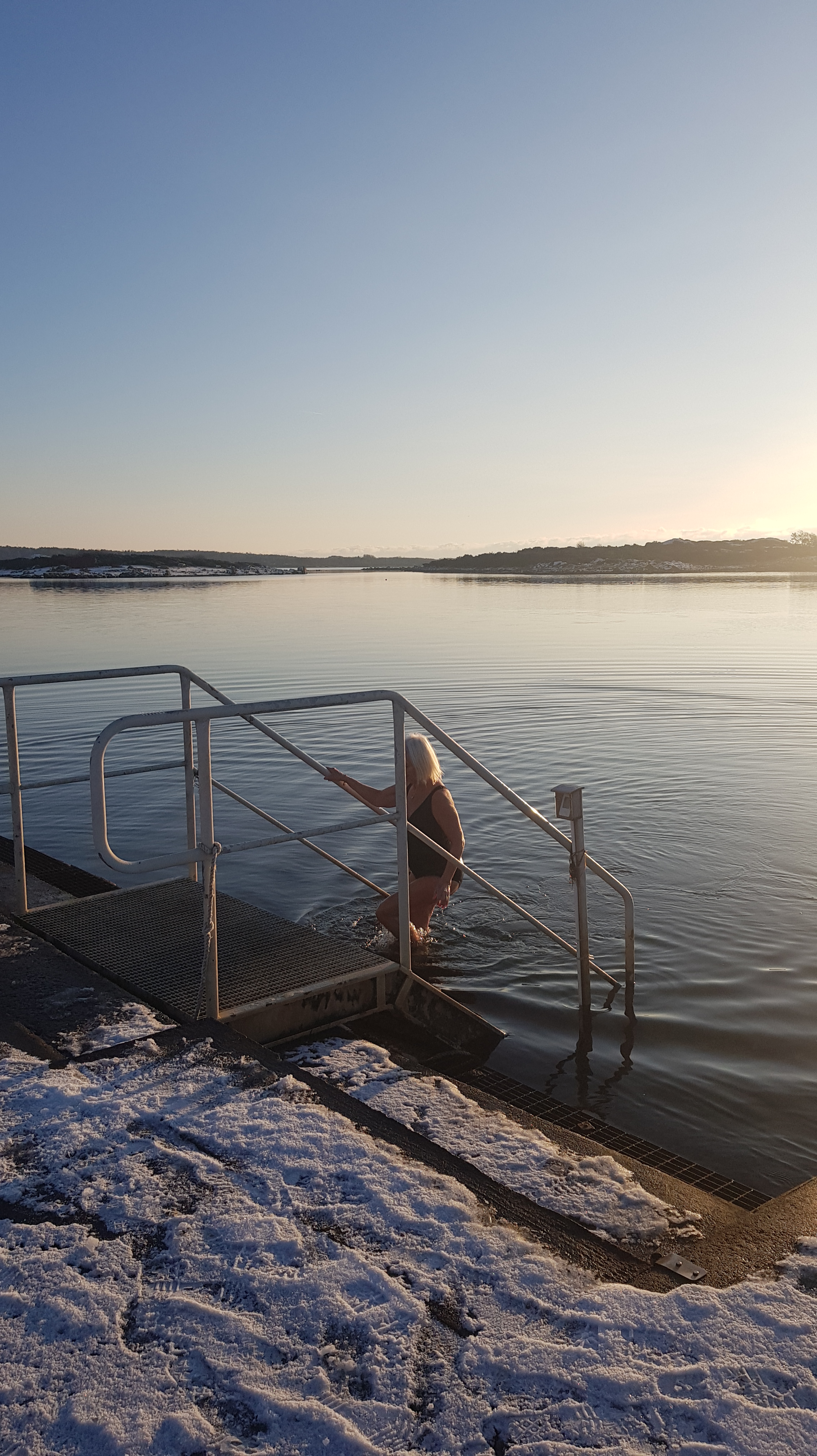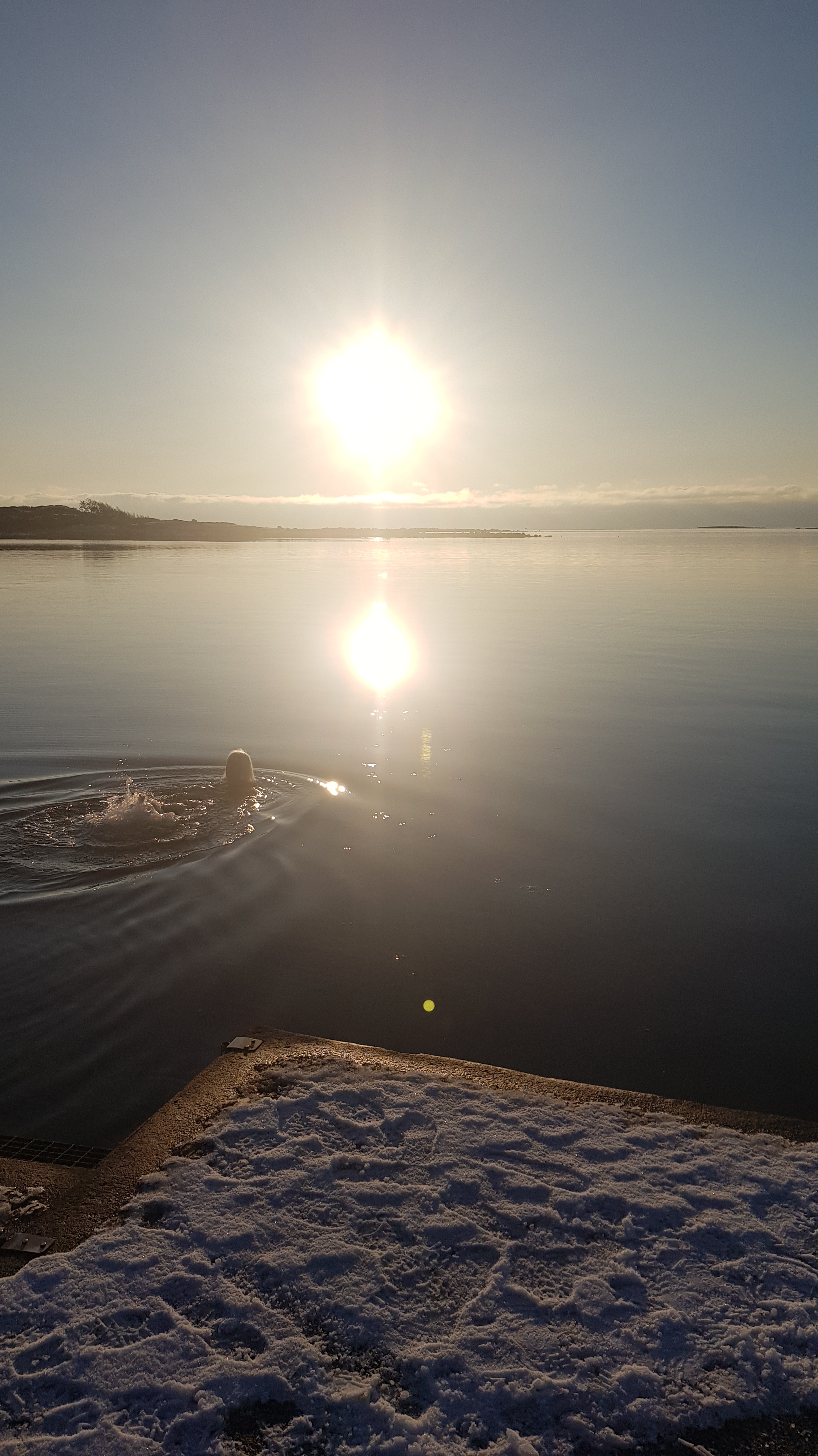 Lördagen den 9 januari var en underbar dag, soligt och det blev varmt, dimman steg från de kalla åkrarna. En sådan dag kan man inte undgå utan att bada. Tänk bada när det är +3 i vattnet och +2 i luften och snön ligger på bryggan. Åkte ner till bryggan i badrockar och ner i vattnet. Det var ett skönt dopp! Vi kunde stå i badkläderna på bryggan och torka i solen. Efter badet hem och duka upp en lunch på altanen, vad passade bäst en sådan dag, om inte en silltallrik med tillbehör. Skön gå in sätta sig vid brasan sedan. WOW vilken dag!