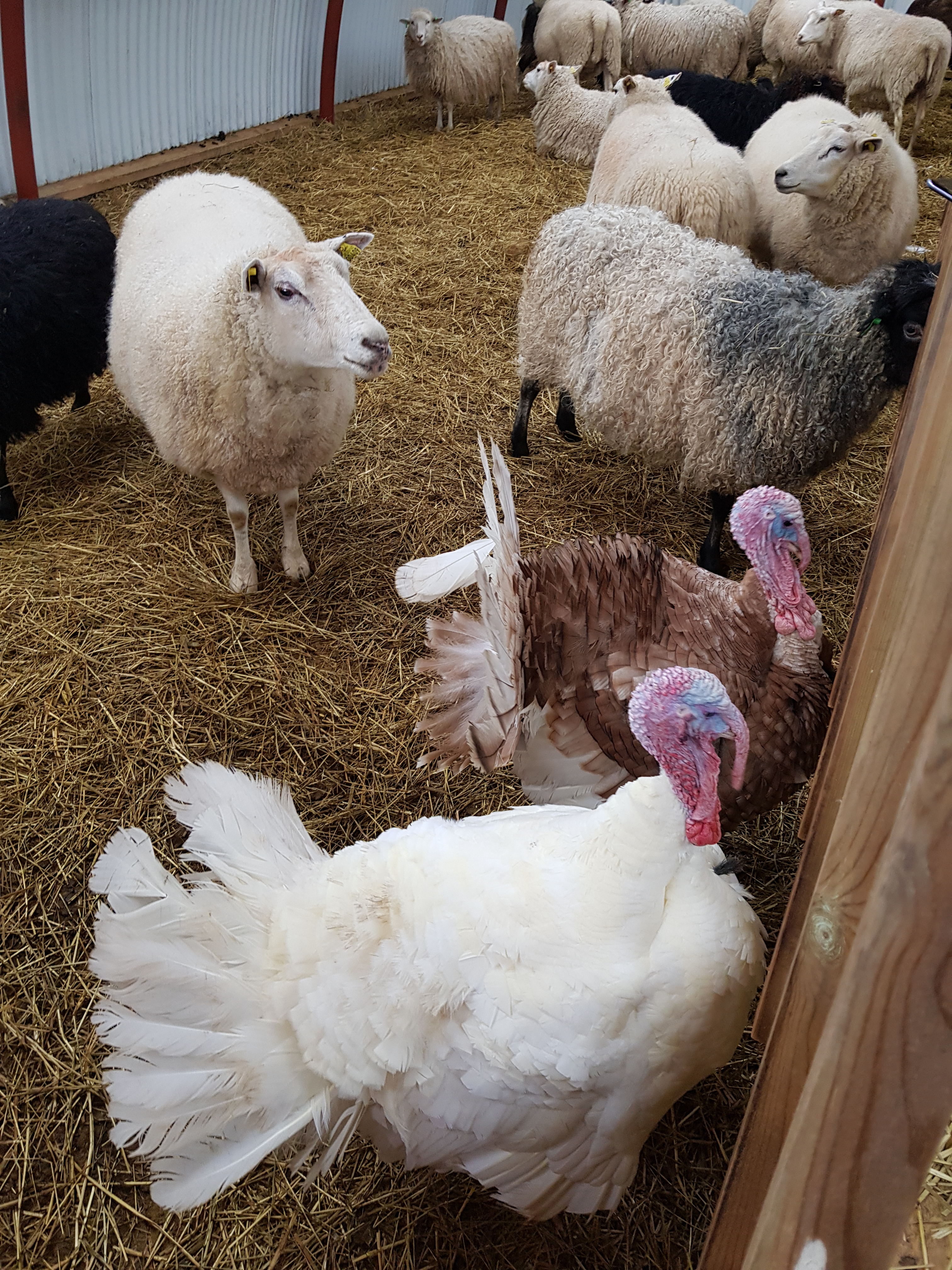 Vilken härlig dag det blev. Började med hundpromenad och sedan et tur inåt landet till Gunnargård vid Ullared. Vi det vill säga barnbarnet och jag gjorde varsitt spöke i lera tidigare i höst och nu skulle vi hämta dem. Gården har massa djur, getter, får, grisar, kalkoner och änder. Vi hälsade på djuren sedan tog vi en fika bestående av choklad med grädde och våfflor. Vilka våfflor sedan, wow så goda. De säljer kött från den egna gården och mycket annat. Vi har redan beställt vår skinka från Lillegården som ligger lite närmare oss. Så julskinkan är fixad.
