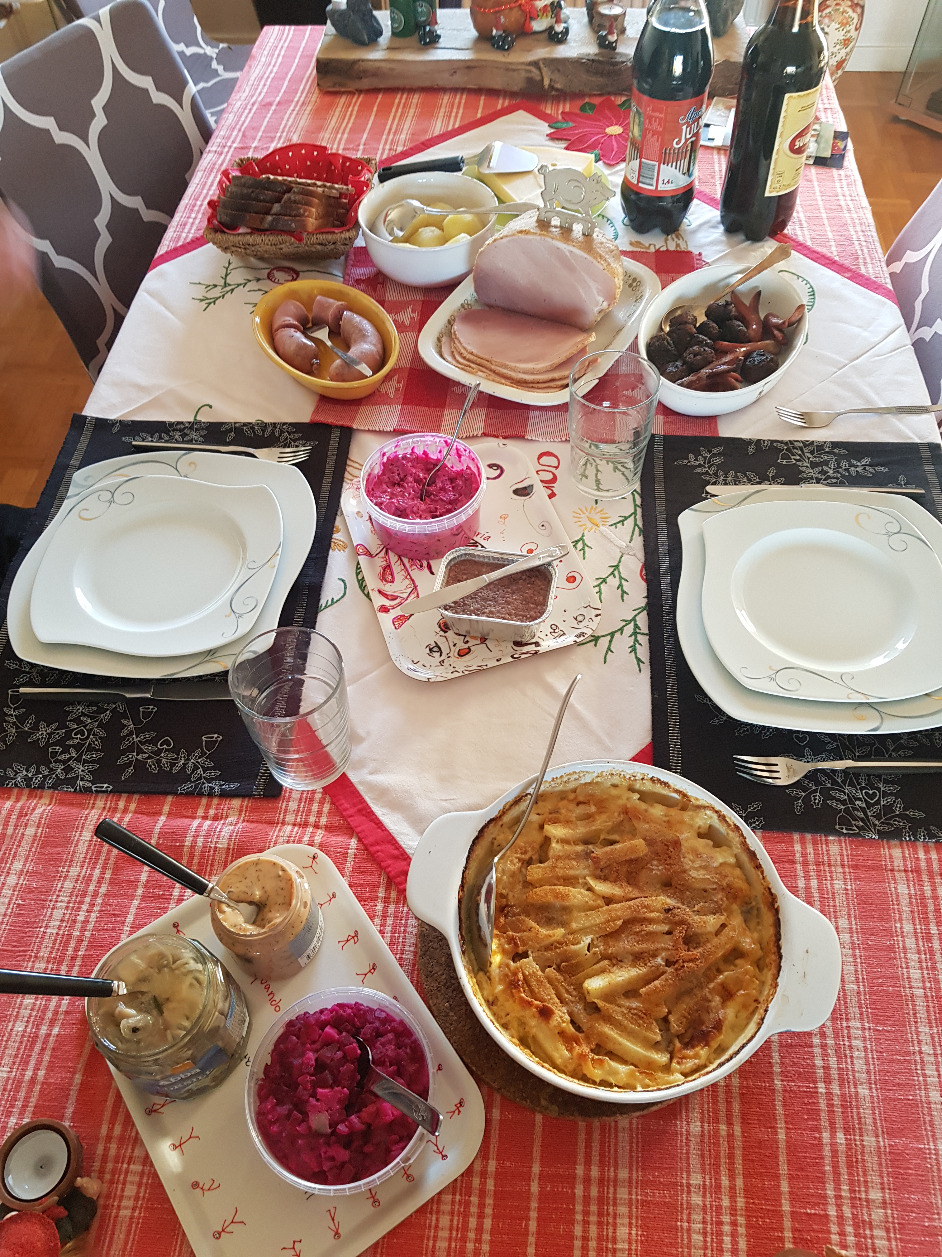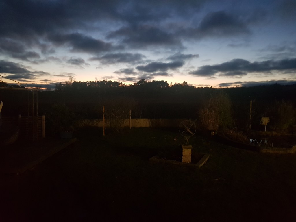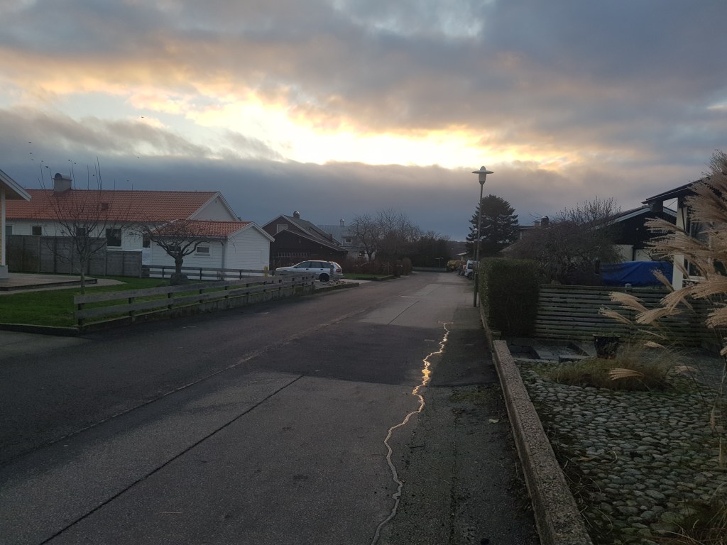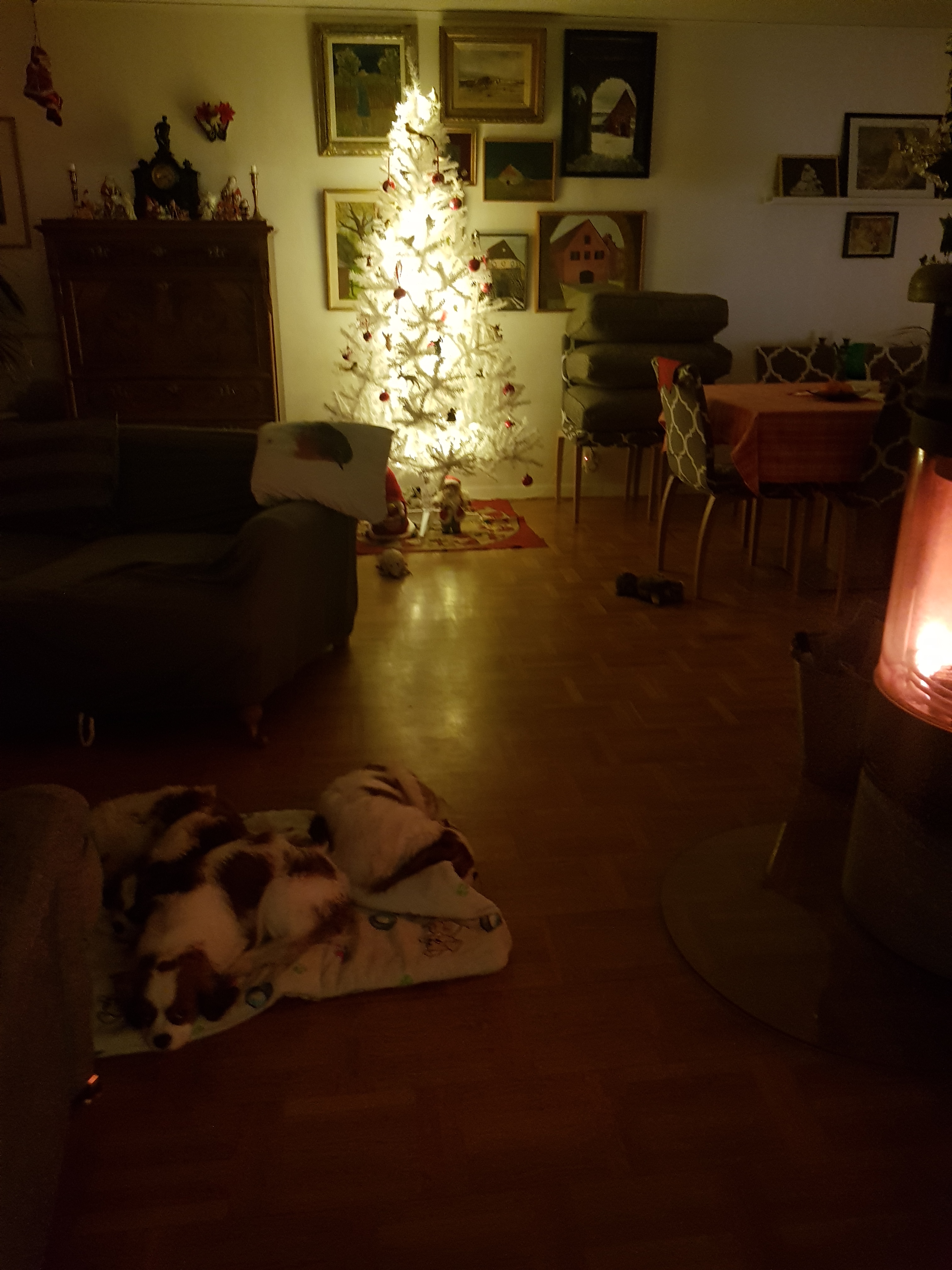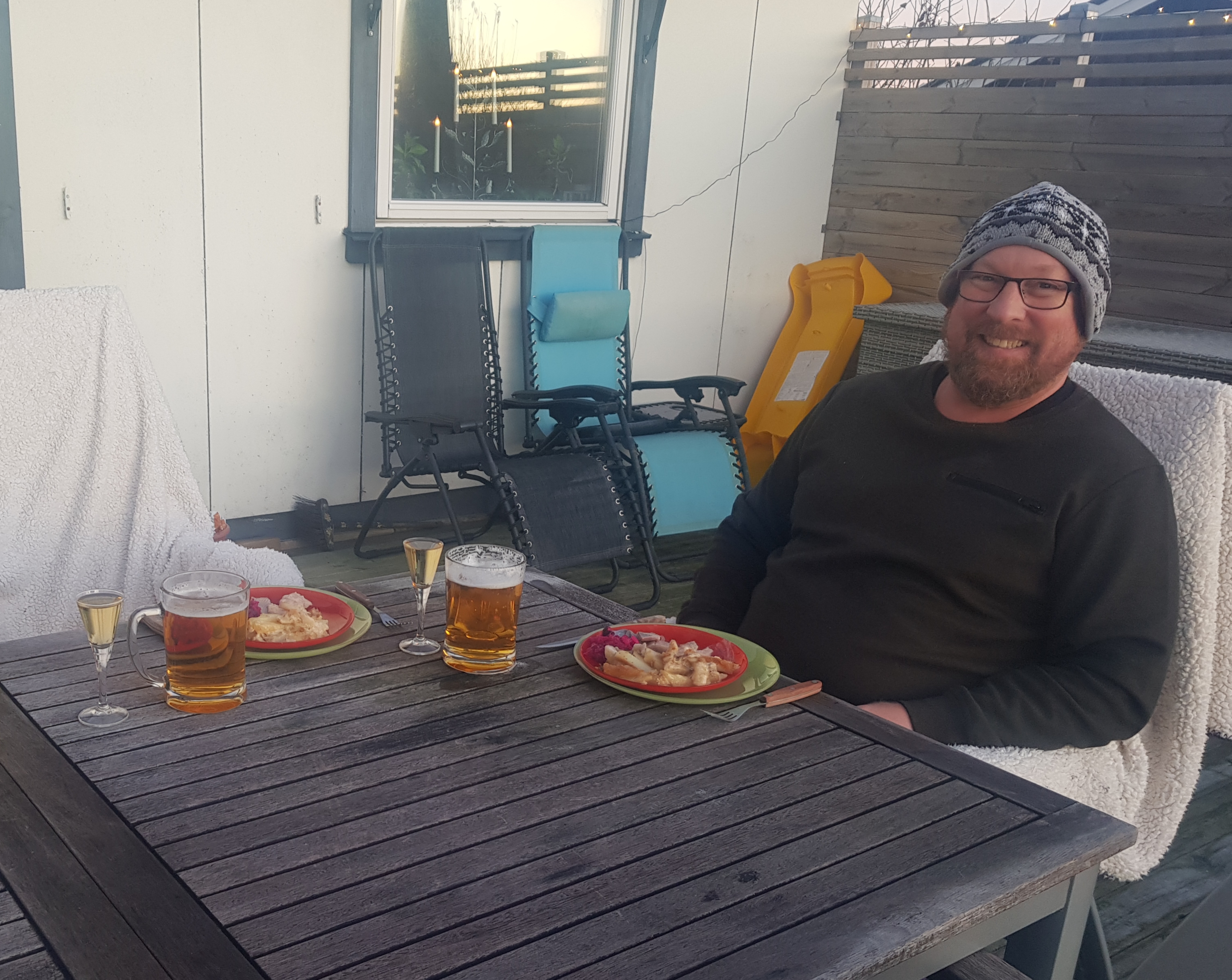 Juldagen var strålande sol, vi borde badat, men hann inte. Lite snö kom men blev snabbt slask. Såg på promenaden en dovhjort hoppa över gärdesgården. Senare tog vi sen lunch ute på altanen just innan solen gick ner. Avslutade dagen med ett parti 500.