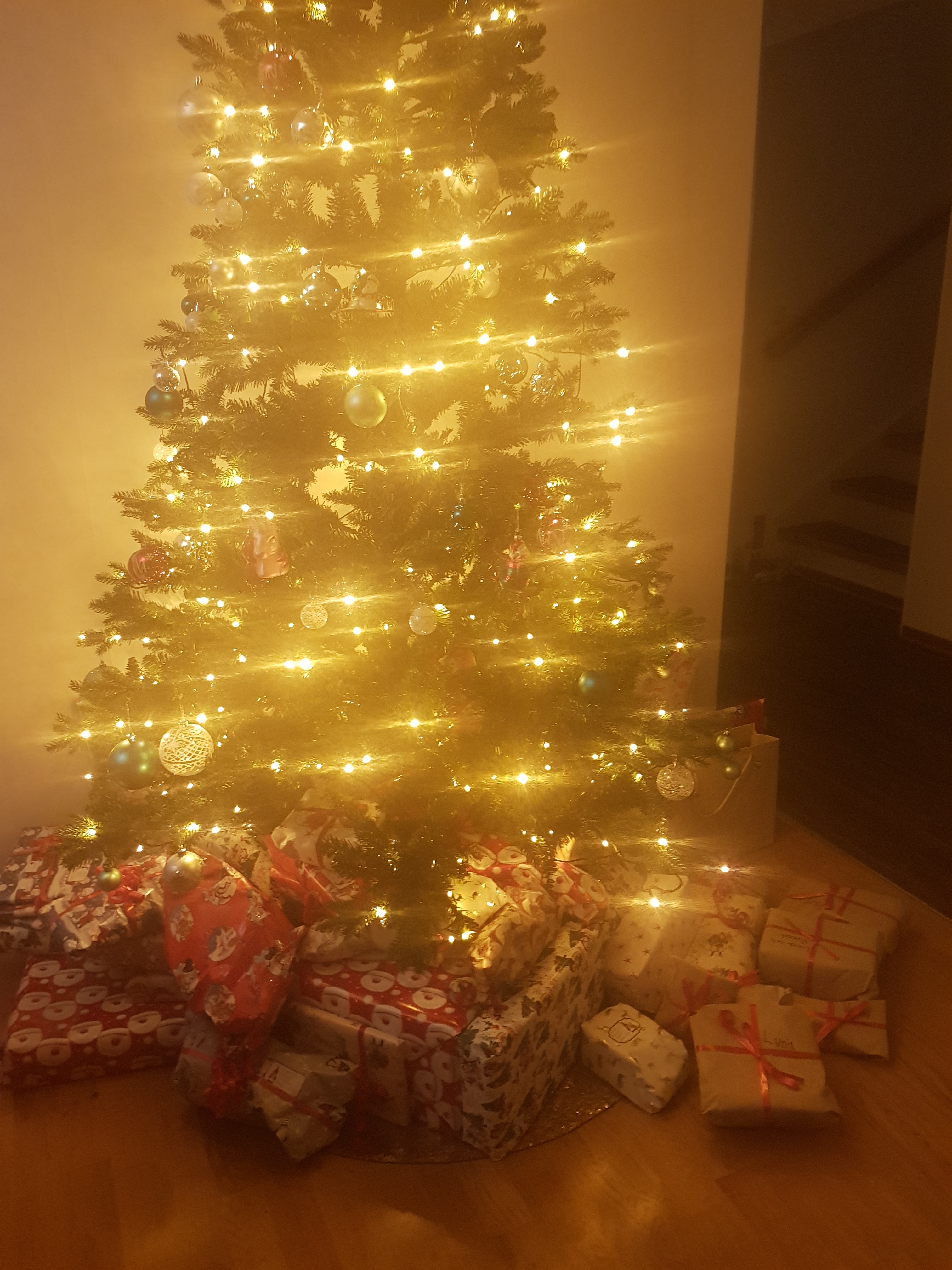 December månad gick fort, lagom till Lucia kom yngsta barnbarnet, en flicka. Vädret var okey och vi badade till Lucia, 21 december och sedan till julafton. Vi hade gjort en lagom härligt stor jullunch till oss och hade julklappsdelning och mys tillsammans med dotter o hennes familj. Den lilla hon sov sig igenom julafton. Märkte inte jultomten som kom och lämnade en påse julklappar vid dörren – corona gjorde att han kom inte in. Därefter åkte vi hem och hade en skön julaftonskväll. Vi har alla haft karantän i stort sett ett bra tag och kunde därav träffas lite.