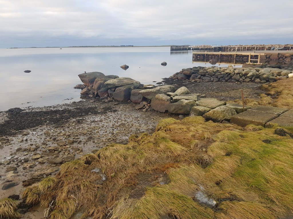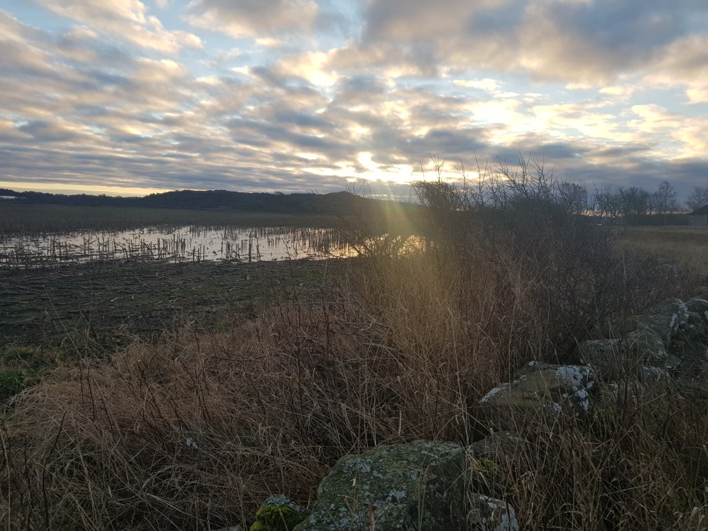 Började nya året med ett dopp i havet, ska man vinterbada så ska man. Fast nu börjar de bli kallt, främst känns det på smalbenen (brist på fett där). Men belöning hemma med god frukost vid sprakande brasa som värmer är inte fel. Sen besök hos ett av mina barnbarn, fika ute vid lekplatsen satt inte fel. Tog en härlig promenad längs strandängarna med hundarna också. Det var rätt skönt ute faktiskt. Restmat till kvälls.