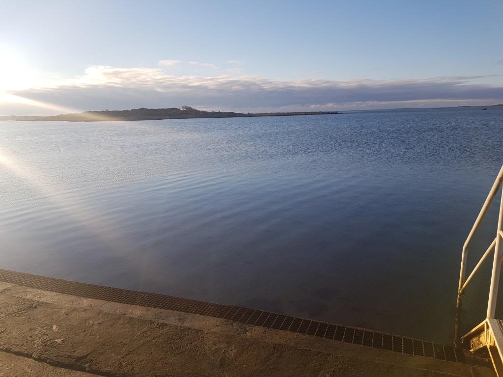 Den tredje januari inbjud till härlig promenad också. Molnen var vackra och en front sträckte sig ut mot havet, en sidan moln och andra sidan sol. Efter promenaden tog jag bilen 900meter till havet och doppade mig. Simmade en liten liten bit. Det var kallt. Men jag gjorde det, badade. Hade jag aldrig trott jag skulle klara. Hade någon sagt det för ett år sen, eller i somras hade jag sagt: ni är inte kloka. Det måste vara +20 gr.