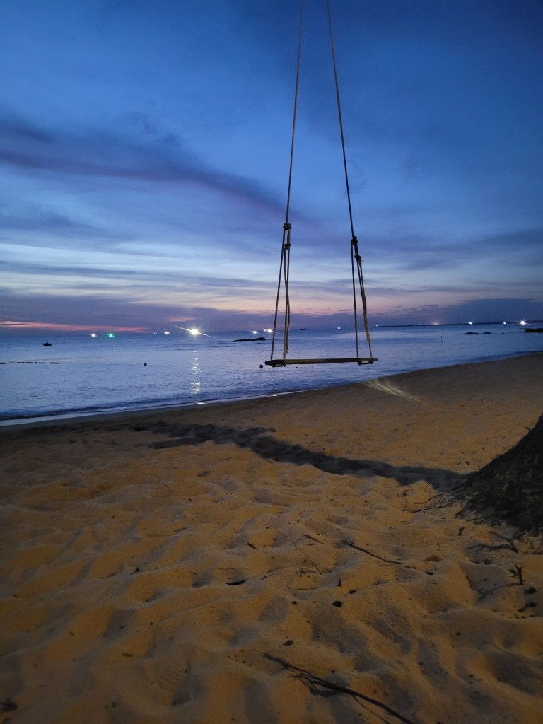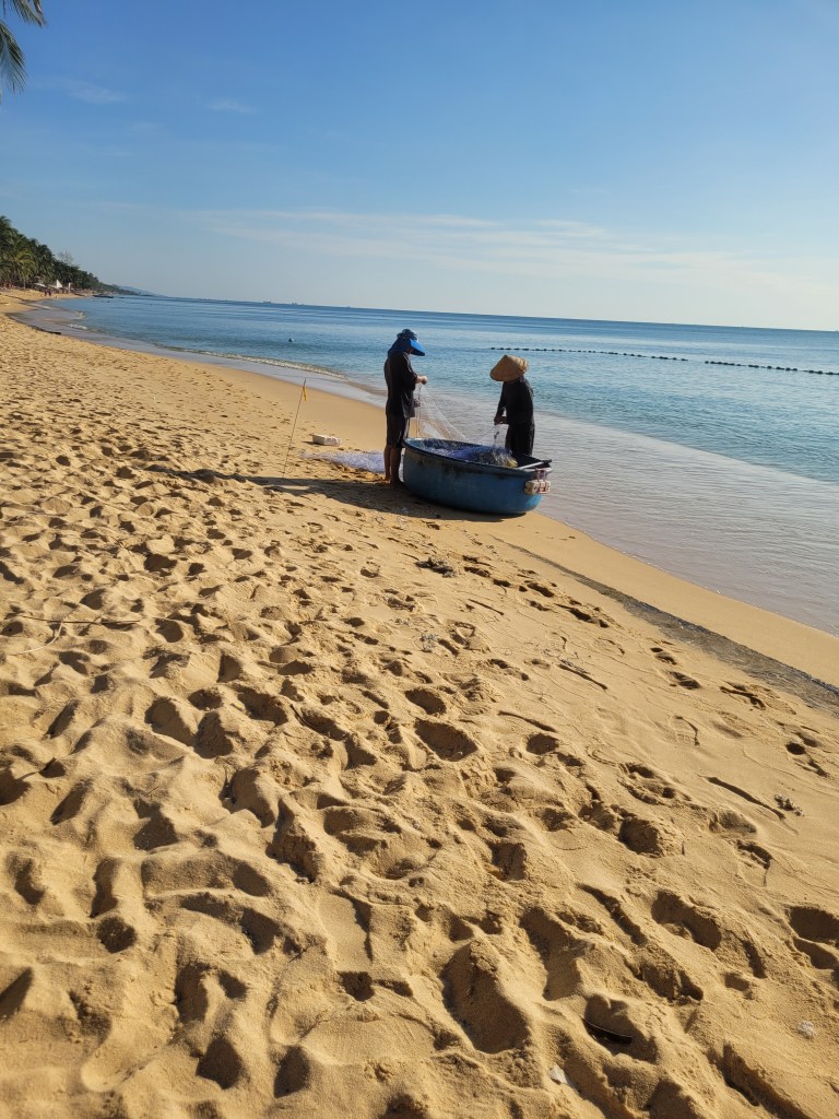 Sen kom vår semester. Flyg till ön Phu Quoc strax utanför kusten vid Vietnam och Kambodja. 10 dagar med över 30 gr i solen, ett hav som var över 25-28 gr och mycket salt. Man flöt som en kork.En fin bungalow ett stenkast från hav och strand. En plats för sol o bad, slappa dagar i solen och god mat.