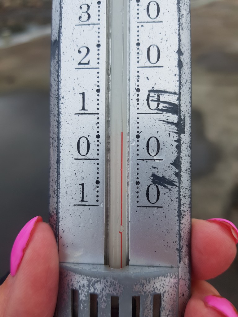 Temperaturen är: +11 grader i luften och +6,5 i havet. Lite kyligt men skönt