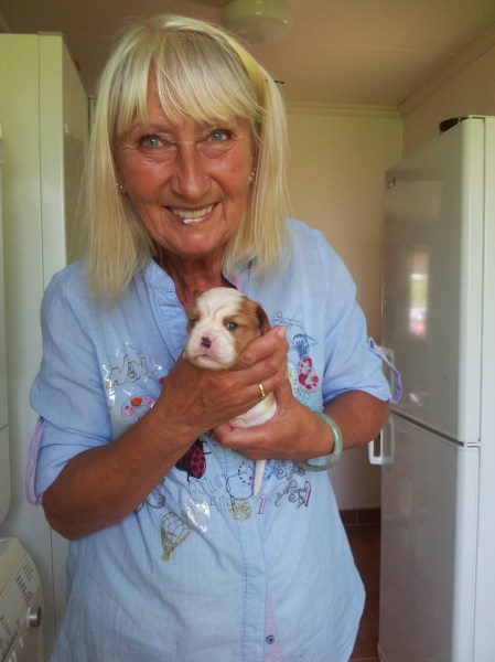 Stella vår lilla Cavaliers tik, född 25 juli 2012, Döpt till Toftas Mary Queen of Scots. I fredags besökte vi henne för första gången. Jans min när han lyfte upp den lilla var minnesvärd. Han var i sjunde himlen. Valet mellan de två tikarna var enkelt, fanns bara en!